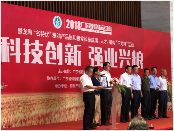 5月28日,2018年廣東糧食科技活動(dòng)周暨龍粵“名特優(yōu)”糧油產(chǎn)品展和糧食科技成果、人才、機(jī)構(gòu)“三對(duì)接”活動(dòng)在梅城世界客商中心舉行。省發(fā)改委副主任、省糧食局黨組書(shū)記蔡木靈,副市長(zhǎng)吳澤桐,國(guó)家糧食局科學(xué)研究院總工程師李福君,省儲(chǔ)備糧管理總公司黨委書(shū)記謝毅文,省糧食局副局長(zhǎng)吳津偉,市發(fā)改局副局長(zhǎng)、市糧食局局長(zhǎng)張勁龍以及省內(nèi)外各界人士逾千人參加了活動(dòng)。