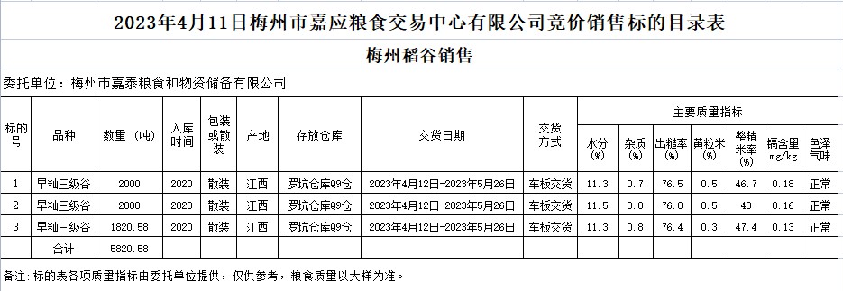 2023年4月11日梅州市嘉泰糧食和物資儲(chǔ)備有限公司稻谷銷售