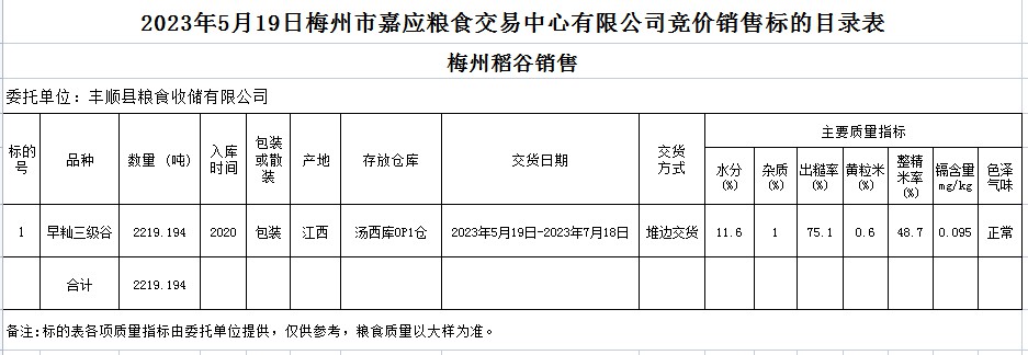 2023年5月19日豐順縣糧食收儲有限公司稻谷銷售