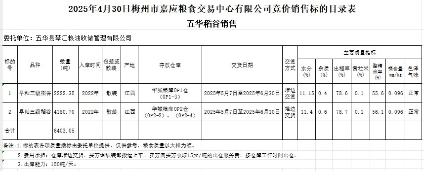 文件下載:2025年4月30日五華縣琴江糧油收儲(chǔ)管理有限公司稻谷銷售