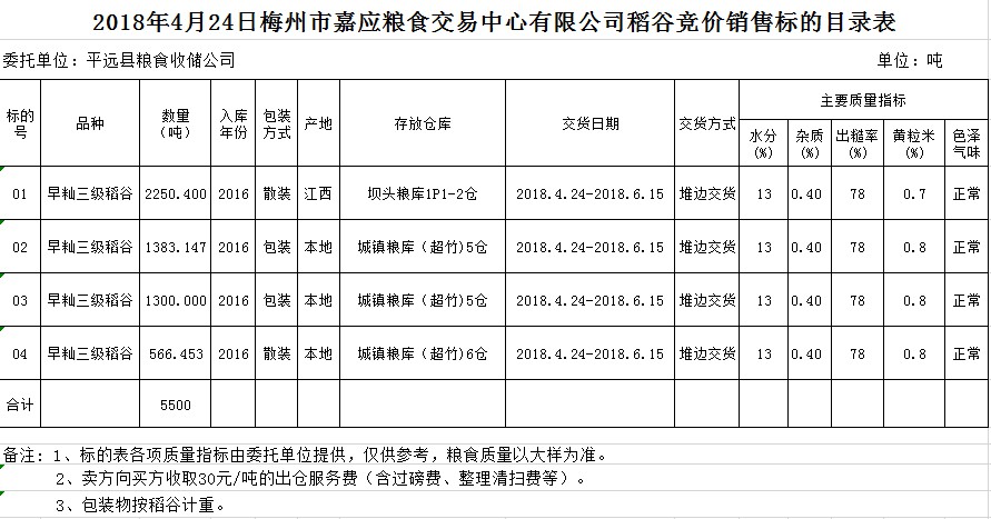 交易時(shí)間和地點(diǎn):20184月24日(星期二)上午10時(shí)。廣東省梅州市彬芳大道南161號(hào)梅州市糧食交易中心3樓。